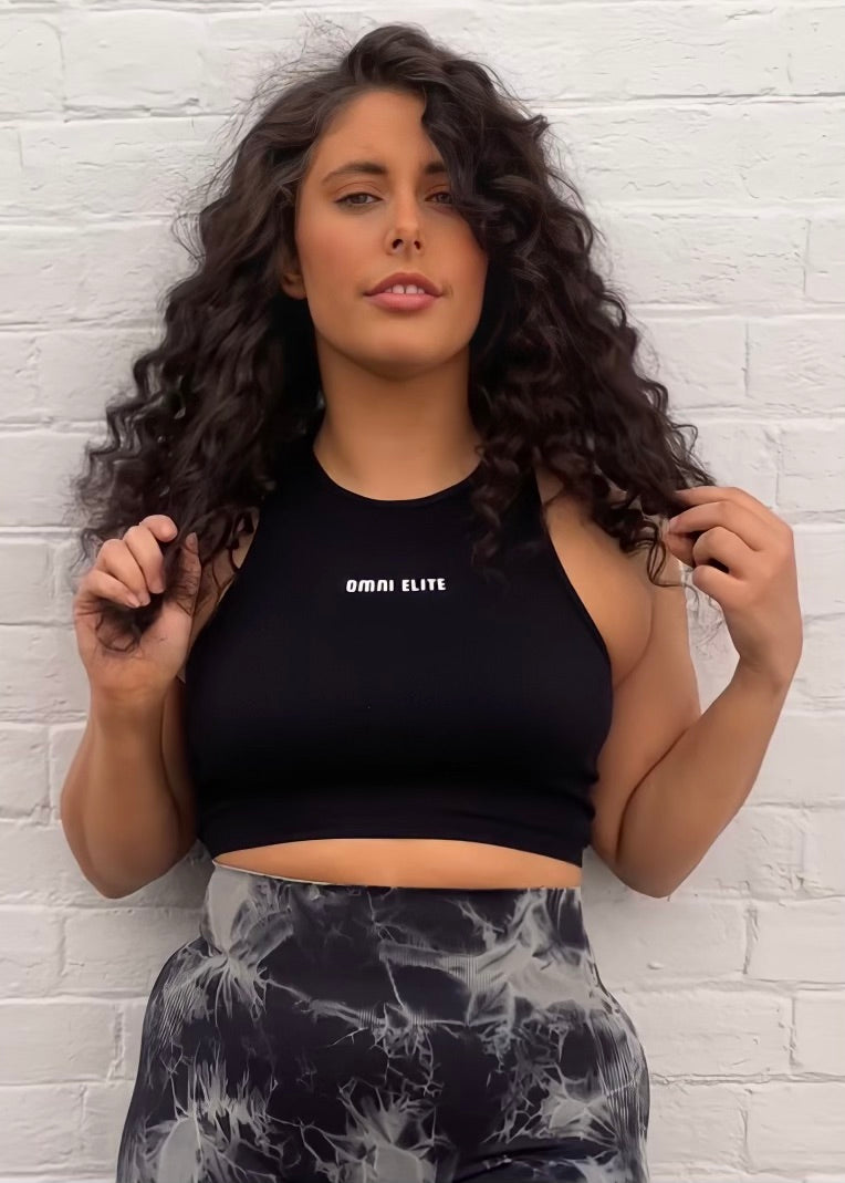 RIBBED CROP TANK in BLACK
